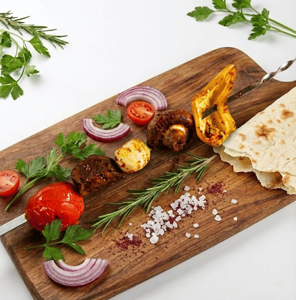 Помидоры, болгарский перец, шампиньоны, маринованный лук
